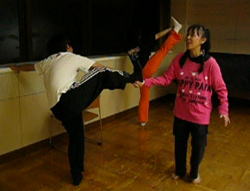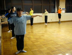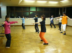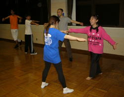 「ピルエットは勢いでまわるものではないの!」 半回転から一回転、二回転と基礎からつみあげるダンス。「今までシティではできなかった地に足をつけたレッスンを!」と語られる原先生の熱のはいりよう。 |