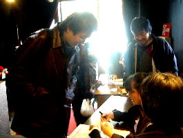 ロビーではボランティア寄付金用、アフガニスタンカレンダーも販売。団員たちを取り巻く”サポーター”諸氏が大活躍。 |