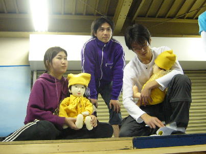 一方男性陣は”青”で統一。加藤由夏が布を渡して説明。 |