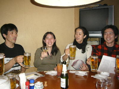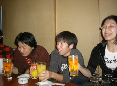 おそらくこれが、本番前、最後の宴か!!舞台の成功を期して、今宵ははじけるぞ! |