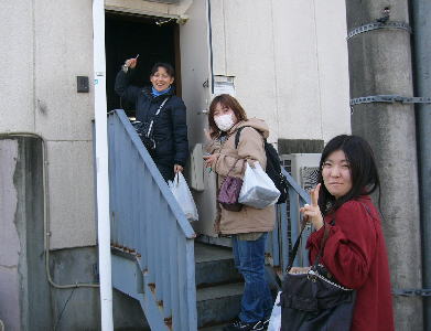 「日曜の稽古は集合が11時。一番乗り3人組が入り口でポーズ! |