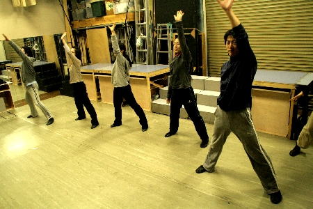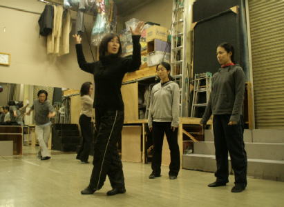 振付の、のりさん、自ら身振り手振りの熱い指導に、団員も真剣です! |
