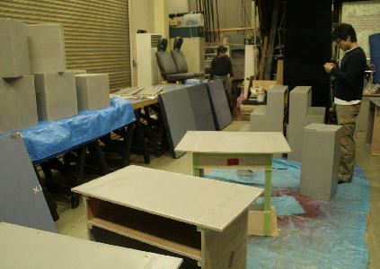 稽古が終われば道具の色塗り。これも結構大変です。 |