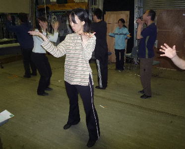 はしもとのりこさんの振付によるダンスレッスンスタート。一つ一つの振りに、ニュアンスが求められます。 |