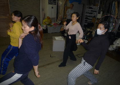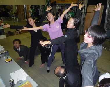 たまりかねた劇団代表 菊地明美が男性陣のレッスンに割ってはいる。今日3/6が誕生日という菊地明美。誕生日こそ、ダンス!ダンス!そしてダンス! |