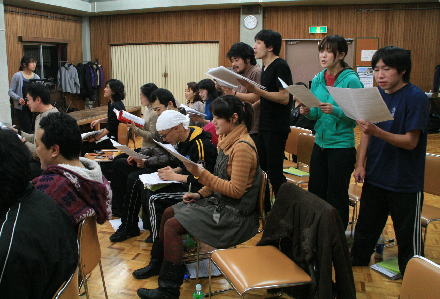部屋の奥で演出の木島さんがそれに答える。強力なスタッフワークに支えられてTomorrowのレッスンは進んでいく。 |