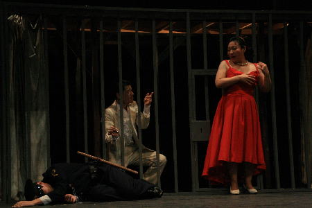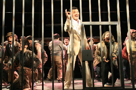 2幕冒頭。ついにつかまったマッキー。鉄格子の中で「快適な生活のバラード」を歌う。