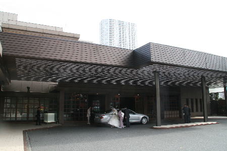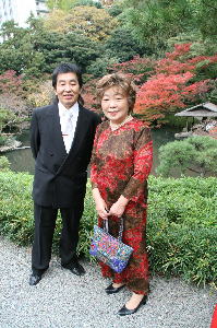 紅葉がきれいな八芳園の中庭。演出家の木島恭さんと、