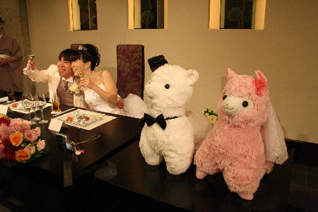 新郎新婦のテーブルの脇にはペアのぬいぐるみが‥。