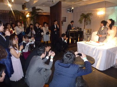 場所を移して結婚式二次会。ご覧の通りの盛況ぶり。