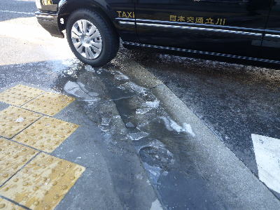 稲城駅からタクシーで便乗。路面がこの通り!凍っています! |