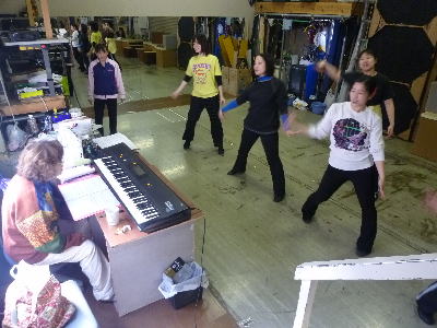 美音子先生の歌唱レッスン。本番を想定して踊りながら歌のレッスンです。