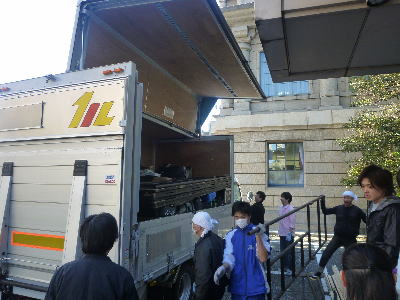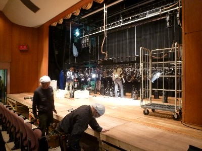 朝9時。まずは道具類、機材の搬入から。昨年の「三文オペラ」に