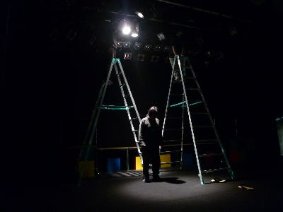 舞台面ができたら照明のセッティング。一つ一つ、
