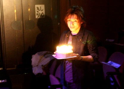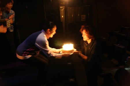 と、そこへ急に「Happy Birthday」のBGMが!。ろうそくに火をともした