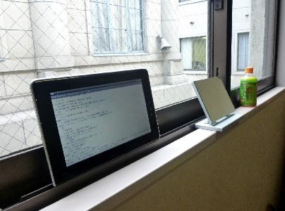 仕込まれている。手前のスレートPCはよく見るとせりふが‥。 |