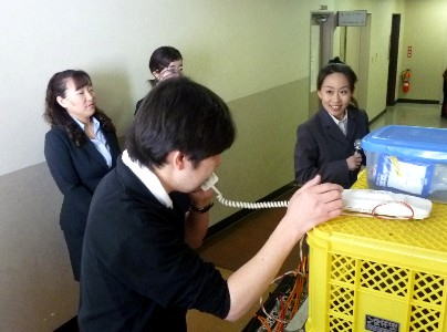 舞台を支える受付スタッフ、。こちらも準備完了! 新婚ほやほやのありさに、