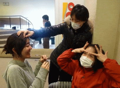 本番前、急遽はじまったあけみ山の断髪式。 |