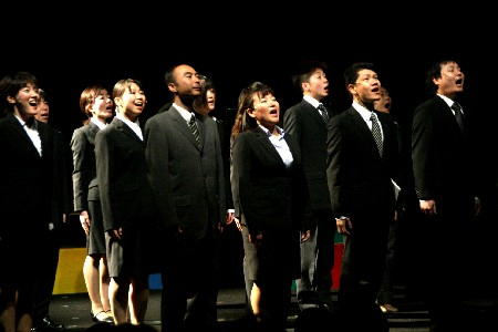 総勢18名のメンバーで歌い踊りました。 |