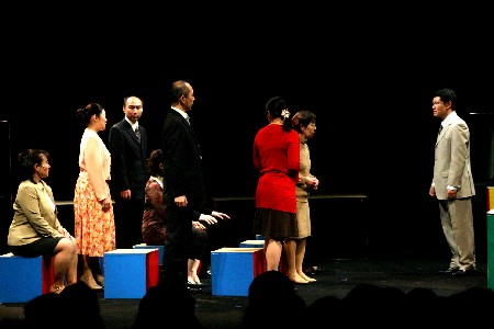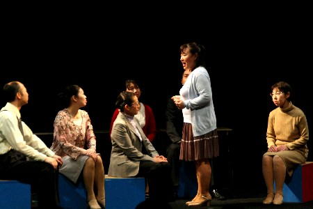 つきたい‥・本当は役者がやりたい‥。各人各様の悩みをうちあける参加者たち。 |