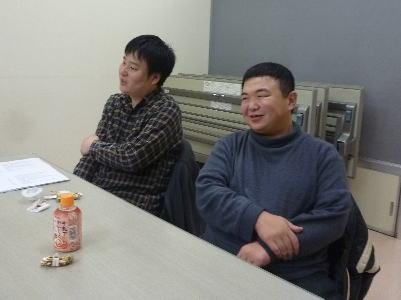 まずはつっちーから。横には木島さんの目が光っている。 |