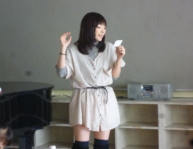 初出演のメンバーにはまずは歌のオーディション。伴奏は代表の菊地明美。
