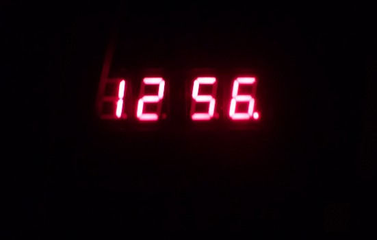 いよいよ本番5分前を切る! 舞台そでの時計。これをみながら役者たちの緊張感は頂点に達する。