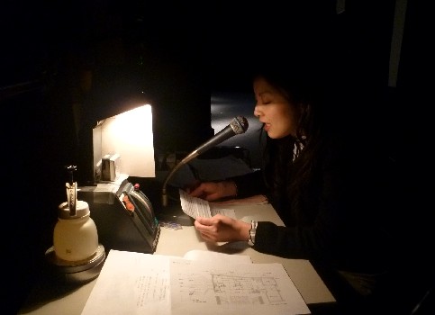 開園5分前。新人のくみこが場内アナウンス。いよいよ本番だ! |