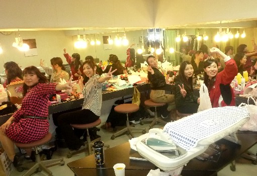 本番直前の女性楽屋。本番前でもリラックスした表情。 |