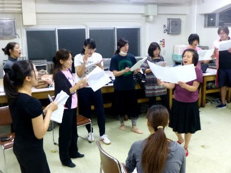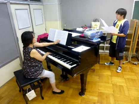 さっそく劇団代表菊地明美の歌レッスンを受ける。 |