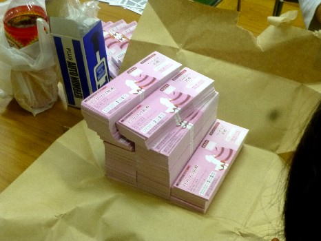 ついにチケットが完成しました。その数3000枚。 |