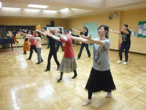 もたい先生の下、ダンスレッスン開始!ダンスは初心者というメンバーも過半数!