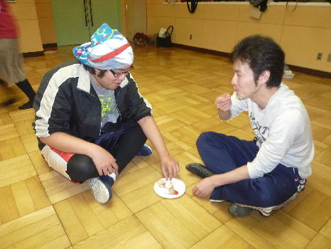 男たちもケーキを食べる。まるで宴会が始まったようだ。