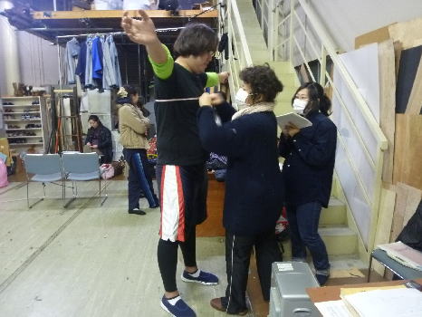 場面は変わって衣装あわせ。まずは衣装さんが採寸を。