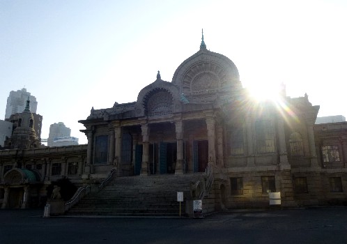 会場となった築地ブディストホールがある東京、築地本願寺。 |