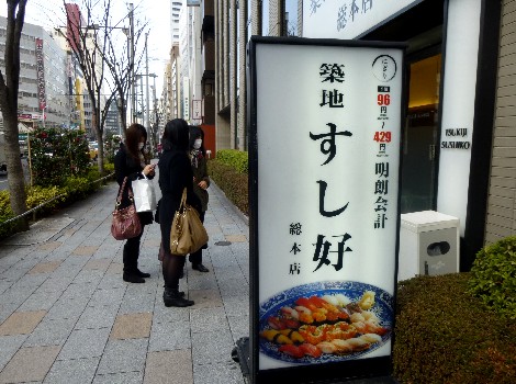 新鮮な魚が市場にあがる築地。会場すぐ横にはお寿司屋さんも! |