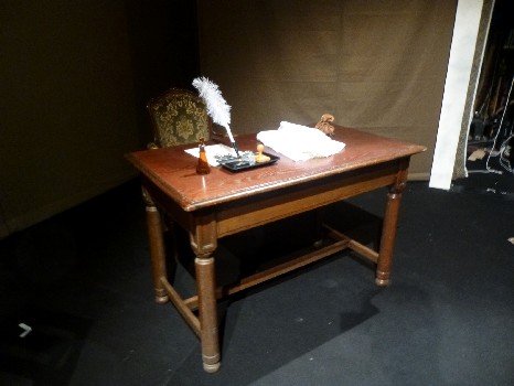 舞時代はフランス革命前夜。アンティークな机に椅子。小道具類も飾られる。 |