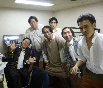 男性楽屋は和やかムード!こちらもマイクを付けて準備完了だ! |