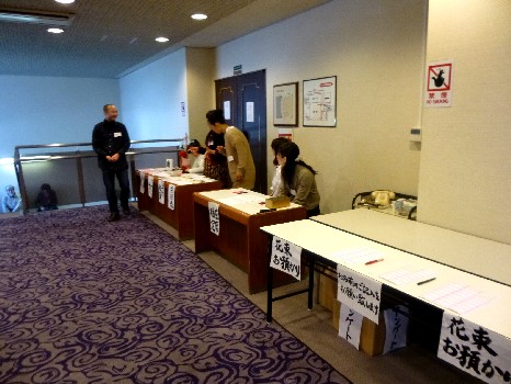 受付ロビーも準備完了!受付スタッフがお客様のご来場を待つばかり。 |