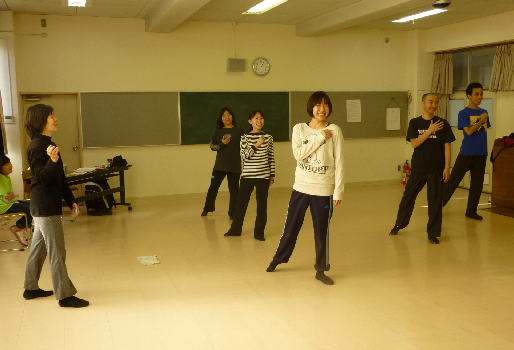 2年ぶりにスタートしたのりさんのレッスン。厳しいレッスンに緊張の面持ち。 |