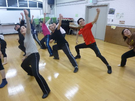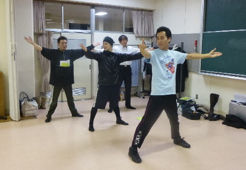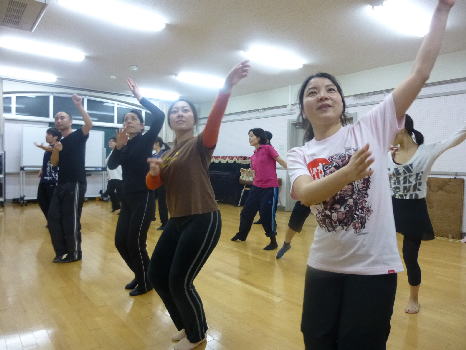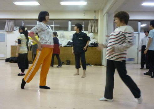 ダンスも形になってきた。手前から、くみこ、昨年入団した新人、慶応卒、ありさ! |
