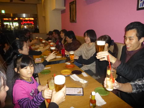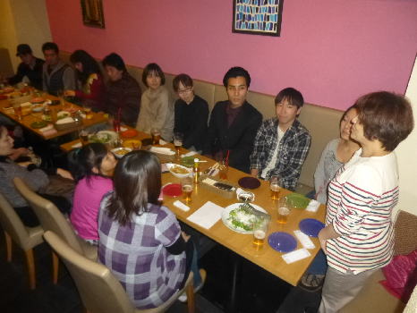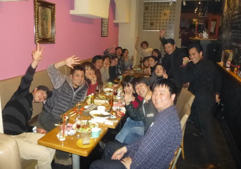稽古が終わって日が暮れて、今宵はクリスマスパーティ。場所はいつもの四谷ビダロッサ。 |