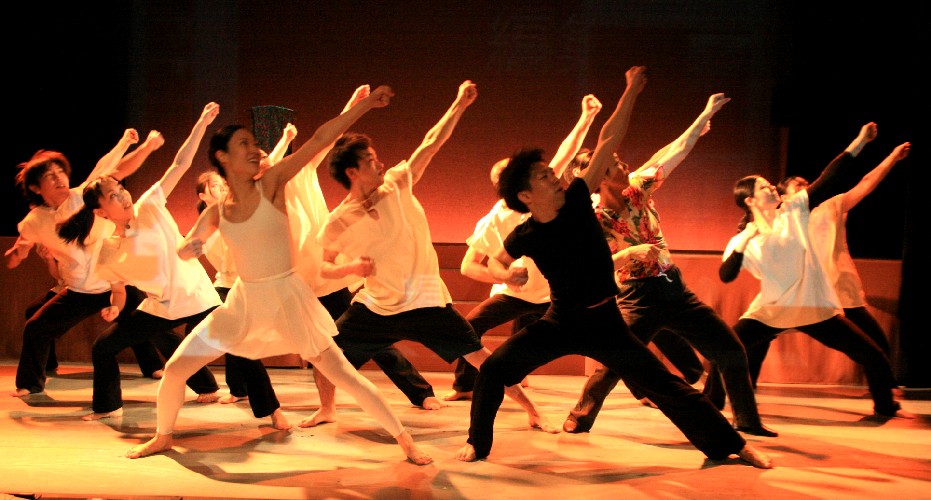 人がいた。舞台最初の力強い農耕ダンス。 |