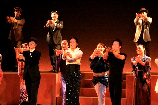 一幕ラスト。文化人たちが勢ぞろいして中国大陸での移動公演の打ち合わせ。