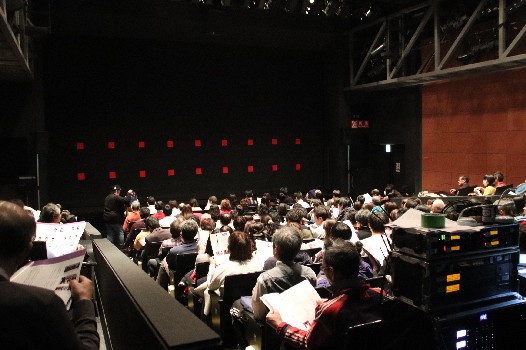 初日から超満員の新橋 内幸町ホール。150席のホールに最大175名のお客様。 |
