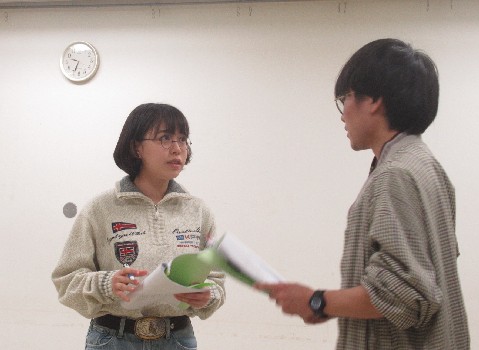 脚本は団員の本多謙太郎。2年半かけて通った学校の体験を脚本にしました。 |