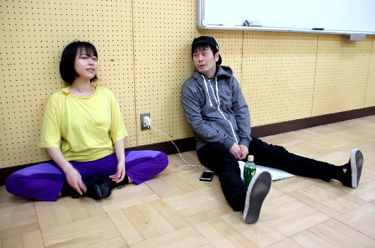 土日は劇団ポプラの稽古場で。京王線稲城駅に集結した団員たち! |