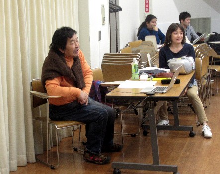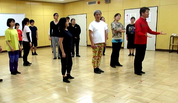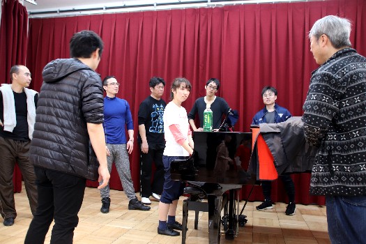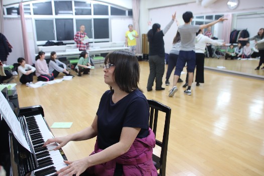 菊地代表の伴奏の元、歌、振り付けレッスン |