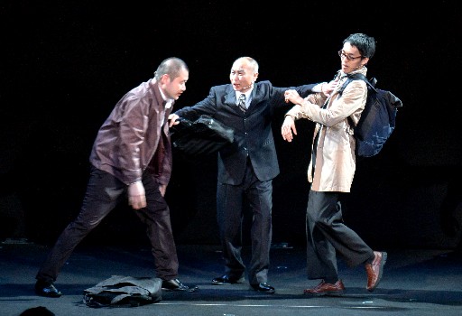あかの他人のケンカを止めに入る主人公の中山祥平。(中央) |
