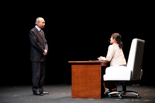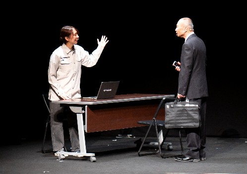 中山の上司、杉野部長を演じる岡野良美さん、相田グループ長役を演じる原麻里子さん。 |